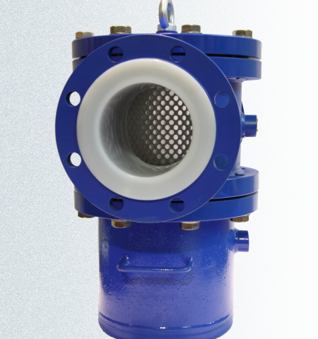 PFA lined “T” strainer with PTFE basket Italprotec is pleased to announce the introduction into FLOWTEF program of the new “T” strainers. PFA lined "T" strainer with PTFE basket
